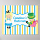 Alice no País das Maravilhas... é uma placa de costume para o quarto de uma menina. Alice bonita em seu bonito vestido azul e a divertida Mad Hatter sentam-se em poster branco amarelo e azul listrado. Decoração do quarto de amante de livros.