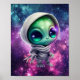 Uma alienígena bonita vestindo um capuz em uma galáxia estrelada.