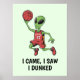 Elevem seu espaço com nossa divertida e enérgica poster com uma alienígena legal preparada para fazer um tiro épico. Esta design mostra uma alienígena erguendo com confiança uma bola de basquete, pronta para morder, com a frase "Eu Vim, Eu Vi, Eu Dava" acrescentando um toque de humor e talento cósmico. Perfeito para fãs de basquete e amantes de arte peculiar, este poster traz uma única reviravolta intergaláctica para a sua decoração de parede.