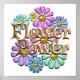 Traga de volta as décadas de 60 e 70 com este design retrometálico com aparência hippies com flores metálicas e as palavras Flor Power.