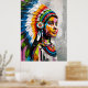 "Esse retrato vibrante e texturizado de uma jovem moça nativa americana captura o espírito de resiliência e esperança. As cores ousadas e os pincéis expressivos criam uma imagem poderosa e inesquecível. Perfeito para aqueles que apreciam arte única e contemporânea."