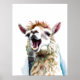 Poster Alpaca branca e branca, cantando através do microf