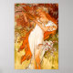 Poster com o Primavera litográfico colorido de Alphonse Mucha (1896). Uma bela mulher de vestido branco toca uma lira debaixo de uma árvore florida. Um presente maravilhoso para fãs do Art Nouveau e colecionadores de arte checos.
