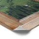 Poster que se parece com uma janela — uma cena alpina Esta é uma típica cena alpina de uma montanha, olhando para outro prédio no alto das montanhas dos Alpes e para os picos de uma distante cordilheira além. Abaixo encontram-se prados de montanha e árvores nas encostas verdes. Esta imagem que parece uma janela captura o espírito de um dia de Verão alpino nas montanhas da Europa.