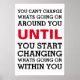 A tipografia motivacional cita poster com texto 'Você não pode mudar o que está acontecendo ao seu redor. Até que comece a mudar o que está acontecendo dentro de você. O texto é preto sobre fundo de cinza leve. A palavra "Até" está em letras maiúsculas a vermelho e a negrito. Você pode alterar o estilo da fonte, o tamanho e a cor do plano de fundo se quiser.