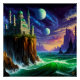 Um poster brilhante do trabalho de arte "Alto Acima dos Oceanos Verdes" por Planetário Prankster.
