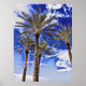 Uma perspectiva vívida e interessante pintura de palmeiras contra o céu de verão.