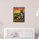 Esta pintura imaginativa retrata um tubarão, adornada com um chapéu de topo e óculos de sol legal, desencadeando uma "sinfonia do pôr do sol" em uma guitarra elétrica de um cume rochoso. A cena desdobra-se sobre a rolagem de colinas verdes e árvores, banhadas na luz quente e texturizada de um sol que se põe. O vibrante, incapaz de escovar cria uma atmosfera poderosa e caprichosa, celebrando o espírito "ROCK and ROLL" em um ambiente natural único.