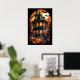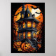 Entra num mundo de encantamento inquietante com este poster de Halloween cativante. Uma mansão assombrada, enfeitada em decoração assustadora, emerge das sombras. Os morcegos sobrevoam o céu noturno, suas silhuetas acrescentando um toque de mística. Na entrada da mansão, uma abóbora esculpida grita com um charme de outro mundo. Este poster capta a essência do fascínio "spook-tacular" do Halloween, onde os assombrados e o festivo convergem num espetáculo de feitiçaria.