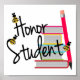 Pilha de livros com lápis contra eles. "Aluno Honroso" em roteiro. Os planos de fundo são de cores diferentes