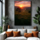 Um campo dourado banhado pela luz suave do nascer do sol. As silhuetas das árvores e reflexos serenos criam uma cena de paz absoluta. Perfeito para espaços que buscam evocar calma, conexão com a natureza e contemplação silenciosa.