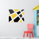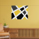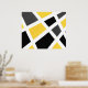 Arte impressa de pintura acrílica geométrica original em amarelo, cinza, preto e branco.