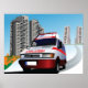 Uma ambulância com uma paisagem urbana ao fundo. Esta design parece realmente eficaz nestes Poster