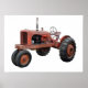 Trator vermelho enferrujado de safena isolado com fundo branco.
