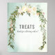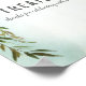 Teste o sinal de mesa para os seus convidados para o chá de aspersão do bebê. spray floral de rosa branca elegante com fundo aquoso verde.