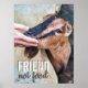 Esta poster apresenta uma cabra amigável e divertida que por abraço de um amigo humano. As palavras "Amigo não comida" são impressas abaixo em branco e marrom. Faz o presente perfeito para cada amigo vegetariano, e para qualquer um que apóie um estilo de vida sem carne compassiva e queira parar a crueldade e a exploração dos animais.
