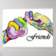 Amigos - o cruzamento de duas vidas. Assim como essas mãos se conectam, assim como a maneira dos amigos. Eles se unem, então aprendem uns com os outros, e crescem juntos, o tempo todo, permanecendo constantes em seus pares, sempre lá para os outros. O vínculo entre amigos próximos não deve ser quebrado. É um precioso e deve ser protegido. Em linguagem de sinais, os dedos indicadores se unem, indicando uma relação que não pode ser abalada - os dedos fazem mais do que o toque; eles ligam. Às vezes, as amizades estão ligadas por toda a vida. Nesta pintura, as cores são brilhantes e felizes - muito como a relação de bons amigos. Uma cor se combina com a outra, mostrando como as vidas podem se misturar em diferentes níveis, cada qual fluindo livremente para o próximo. O simbolismo por trás do sinal é tão adorável quanto o próprio sinal. E esta pintura captura o significado lindamente. Este é um presente perfeito para qualquer amigo. Cada vez que o espectador passa pela parede em que esta peça de arte pendura, ele ou ela é lembrado da conexão entre bons amigos, um tesouro com certeza. É também o noivado perfeito, casamento ou presente de aniversário. Não há nada mais doce do que o marido e a esposa que são também melhores amigos.