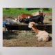 Caprinos, pôneis e amigos animais da fazenda de lama compartilhando o poster do café da manhã. Fotografia animal por Susan. Contacte-me se quiser ver alguma das minhas imagens na canvas esticada.