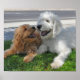 Jumbo, à esquerda, é um Labradoodle e Huey, à direita, é um Goldendoodle. Eles estavam trocando notas depois da aula de filhotes.