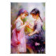 Uma pintura gerada por IA de duas amigas admirando flores em um jardim. Seria uma bela decoração para berçário.
