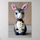 Uma amigurumi bonitinha, feita à mão, com um canguru pequeno, cinza e branco, com sotaque rosa, feito a partir de fios de torção. Tem olhos grandes e expressivos e orelhas perfeitas, dando-lhe uma aparência caprichosa.