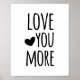 Uma doce e moderna tipografia cita impressão de arte que diz Love You More em uma design de preto e branco com letras.