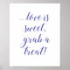 Poster Amor é doce Pegar um doce Marinho azul doce Buffet