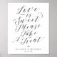 Sinal de Casamento de Script de Caligrafia Elegante - O amor é doce, por favor, dê uma olhada. Entre em belas letras de rico e seu texto personalizado. Um na moda, mas simples, design formal em preto e branco ou qualquer cor de fundo que você escolher. Basta clicar no link personalizar mais, mostrado na área de personalização de texto à direita, e escolher seu fundo de cor personalizado. Este poster de placa faz com que seja rápido e fácil criar acréscimos incríveis à decoração do casamento. Os sinais podem ser ampliados, há muitos tamanhos a serem escolhidos, assim como opções para enquadramento e correspondência personalizados. sinalização personalizada de casamento. ~ Verifique meu compro ou coleção abaixo para ver mais sinais complementares do seu casamento