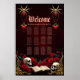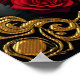 Amor eterno nas sombras da escuridão, no estilo gótico. O ponto focal é um arco gótico majestoso decorado com detalhes delicados de ouro e brilhando sobre um fundo vermelho profundo. As duas colunas elegantes que flanqueam o arco-íris adicionam um toque sublime ao design e enfatizam o design opulente. O coração balançando suavemente do arco-íris desenhar o olho e é enquadrado por um efeito sanguíneo que goteja,