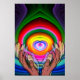O arco-íris colorido da arte digital com coração no centro e mão de cor diferente. Esta arte é sobre Amor, Unidade e Paz em que todos queremos e precisamos ao redor do mundo.