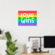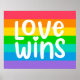 Este trabalho de arte apresenta um arco-íris colorido com as palavras Love Wins.
