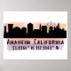 Impressão apresenta a silhueta do horizonte de linha do horizonte da cidade de Anaheim com abertura de cores d'água e coordenadas do mapa de latitude e longitude
