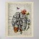Anatomia do cérebro humano com borboletas, flores e beija-flor vermelha num pano de fundo de uma página de dicionário vintage. dom perfeito e decoração de parede para neurocientistas, neurocirurgiões, profissionais de saúde mental e estudantes de medicina.