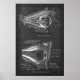 Anatomia do Olho Humano mostrando os músculos da órbita direita e a seção sagital da cavidade orbital direita. A ilustração está sobreposta em um fundo de quadro de chalkboard em sala de aula. Esta peça é perfeita para uma sala de espera da Optometria, ou como presente de graduação para optometristas.