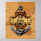 O leme e a âncora do navio clássico vintage, e um mapa náutico de estilo vintage das Chaves da Flórida. Personalize adicionando seu monograma, nome ou até mesmo o nome da sua nave no espaço fornecido.