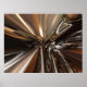 Os ajustes à ampliação e à posição da câmera neste trabalho de arte digital transmitem um efeito de profundidade a uma série de anéis de metal castanho e vidro.