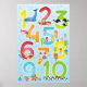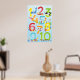 Poster de números de um a dez com ilustração adorável de animais submarinos. Perfeito para a arte da parede do quarto da sua filha. Disponível em diferentes temas de cores.