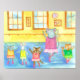 Um poster bonitinho com aulas de dança de balé com Miss Mouse e seus quatro alunos, incluindo um gatinho, guaxinim, coelho coelho e camundongo em roupas de dança e calçados de balé rosa ilustrados com aquarela. Poster para quartos para crianças!