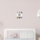Arte de parede para quarto de bebê com ilustração desenhada à mão de animais da savana (girafa, leopardo, rinoceronte, leão, elefante e zebra). A citação interna diz "Selvagens e Livres". Ótimo para bebês meninas e meninos.