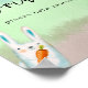 Convites para chuveiros de bebês neutros em termos de gênero. Um exemplo de uma madeira de cor aquática: raposa com mirtilo em patas, urso com framboesa, ouriço com pera, coelho com cenoura. O fundo de aquarela é multicolor.