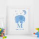Poster com elefante azul pastel engraçado e engraçado e monograma para o menino.