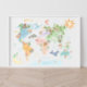 Poster Animal World Map Kids Impressão, Animais do Mundo