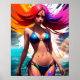 Retrato De Uma Garota Bikini Animada, Maqueamento, Explosão De Lixo Líquido, Colorida, Altamente Detalhada, Ilustração.