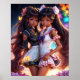 Você é uma garota negra engraçada e nerd que ama anime e manga? Este item gráfico multicolorido de arco-íris é excelente para afro-americanos, índios ocidentais, afro-britânicos, afro-latinas, geeks africanos e muito mais! Mostre seu orgulho de anime, nerd pretos! Poster design apresenta duas garotas mágicas de pele castanha com muitas melaninas e flores. Podem ser irmãs ou amigas. Animecore de fantasia etérea ideal para o manga otaku e fãs de anime, expos, Dia Nacional de Anime ou qualquer pessoa que ama anime, histórias em quadrinhos, animação e reprodução!