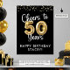 Comemore um aniversário de 50 anos com um sinal de boas-vindas impresso em um poster com o título CHEERS TO 50 ANOS com números falsos de balões metálicos de ouro e tipografia moderna de escrita, confetti e sua mensagem personalizada na sua escolha de cor de fundo (mostrada a preto). OPÇÕES: O exemplo é mostrado em um tamanho de 18x24 pol em Papel de Valor (Matte); outros tamanhos de impressão padrão e personalizados, qualidade e enquadramento de papel, arquivo de Download Digital Instantâneo para impressão local ou transferência do design para um conselho de espuma, faixa, canvas ou outras opções de produto estão disponíveis na página de pedido. DICA DE REDIMENSIONAMENTO: Escolha Tamanho Personalizado para bordas pares alterando a altura e a largura proporcionalmente após clicar no ícone UNLOCK (parece um link de cadeia). ASSISTÊNCIA: para obter ajuda com a modificação ou personalização do design, alteração de cor, redimensionamento ou transferência do design, entre em contato com o designer ANTES DE ENCOMENDAR através da guia MENSAGEM de Bate-papo Zazzle ou envie um e-mail para makeitaboutyoustore@gmail.com.