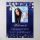 Um poster de boas-vindas para uma festa aniversário de 21 anos. Um fundo azul marinho com estrelas elegantes e falsas prateadas. A cor azul é irregular. Personalize e adicione uma foto, nome e texto. Cartas brancas.