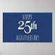 Design de 25 de aniversário de prata sobre um fundo azul de couro azul.