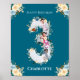 Crie uma colagem de quatro fotos no terceiro aniversário em um formato grande número três. Decorado com lindas e adoráveis aquarelas, flores amarelas e azuis e rosas com folhagem verde. Um presente perfeito de aniversário de 3 anos. Colagem de fotos número 3 personalizada para um produto exclusivo e muito especial.