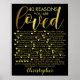 Um fabuloso poster de presente de aniversário de 40 anos. Este design dourado é uma maneira maravilhosa de enviar uma mensagem de 40 anos de coração sentido. Preencha o poster com 40 razões pelas quais você ama o receptor. Um efeito na moda-ouro sobre um design personalizado de fundo negro que eles certamente amam.