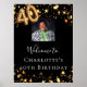 Um poster de boas-vindas para uma glamourosa festa de aniversário de 40 anos. Um fundo preto decorado com estrelas douradas falsas. Personalize e adicione um nome.